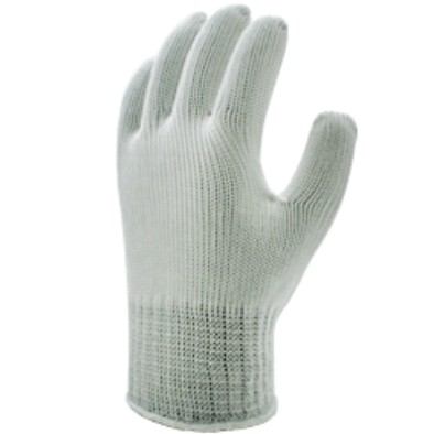 Luva de segurança confeccionada em fios multifilamentados de polipropileno/poliéster, com dois fios de aço em sua alma encapados por multifilamentos de poliamida.