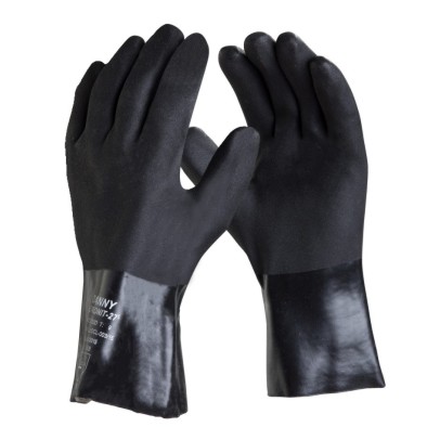 Descrição: Luva de segurança confeccionada em PVC com suporte têxtil em algodão e palma áspera antiderrapante.