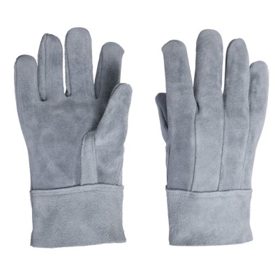 Luva de segurança confeccionada em raspa, tira de reforço externo entre o polegar e indicador, reforço interno na face palmar, costurada com linha de algodão. Punho nos tamanhos 7 cm, 15 cm e 20 cm.