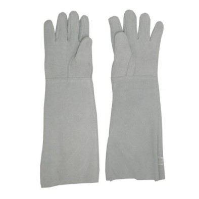 Luva de segurança confeccionada em raspa, tira de reforço externo entre o polegar e indicador, reforço interno na face palmar, costurada com linha de algodão. Punho nos tamanhos 7 cm, 15 cm e 20 cm.