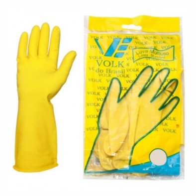 Luva de segurança, confeccionada em borracha natural (látex), revestida internamente com flocos de algodão, antiderrapante na face palmar e nos dedos, lisa na face dorsal e punho.