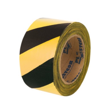 Descrição: Faixa de sinalização zebrada amarela e preto.